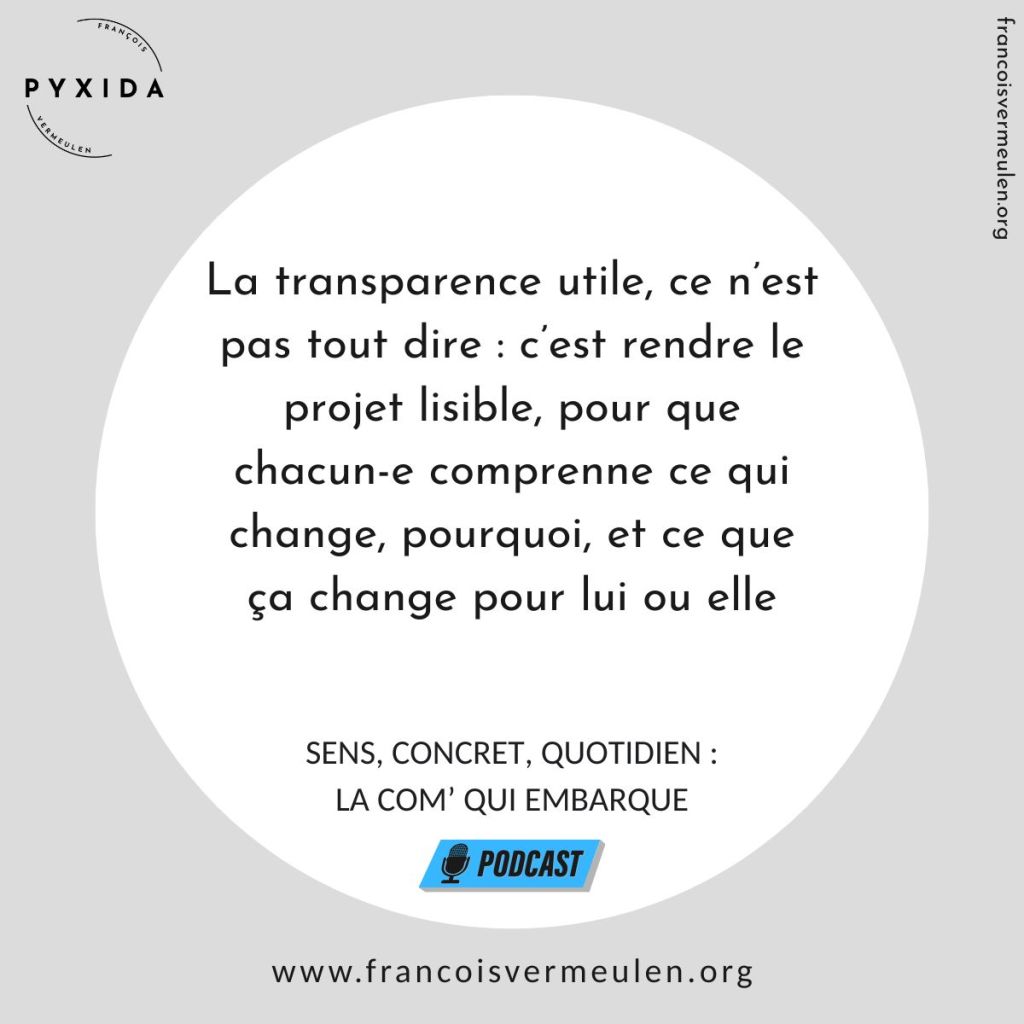 Pour résumer : rendre un projet lisible, ce n’est pas de la “com’”. Ce n’est pas du vernis. C’est une forme de respect. Respecter le temps des gens. Respecter leur besoin de repères. Respecter leur besoin d’anticipation.